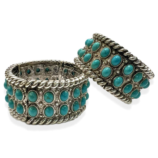 Hammered Silver Metal Stretch Bracelet with Bubble Edge